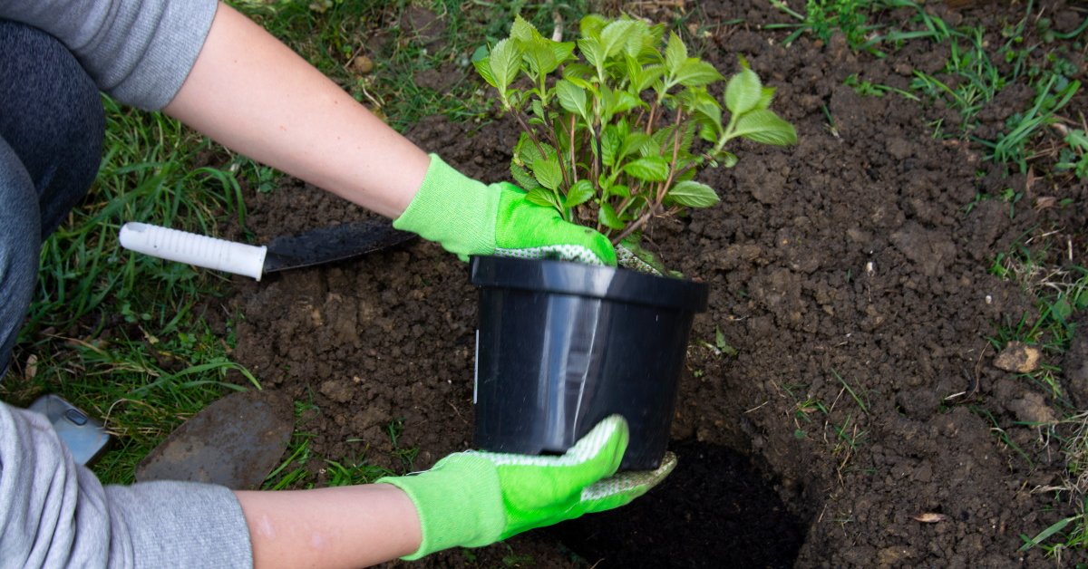 Для посадки гортензии в открытый грунт нужно подготовить лунку в два раза больше корневой системы растения. Пересадка осуществляется вместе с земляным комом.
